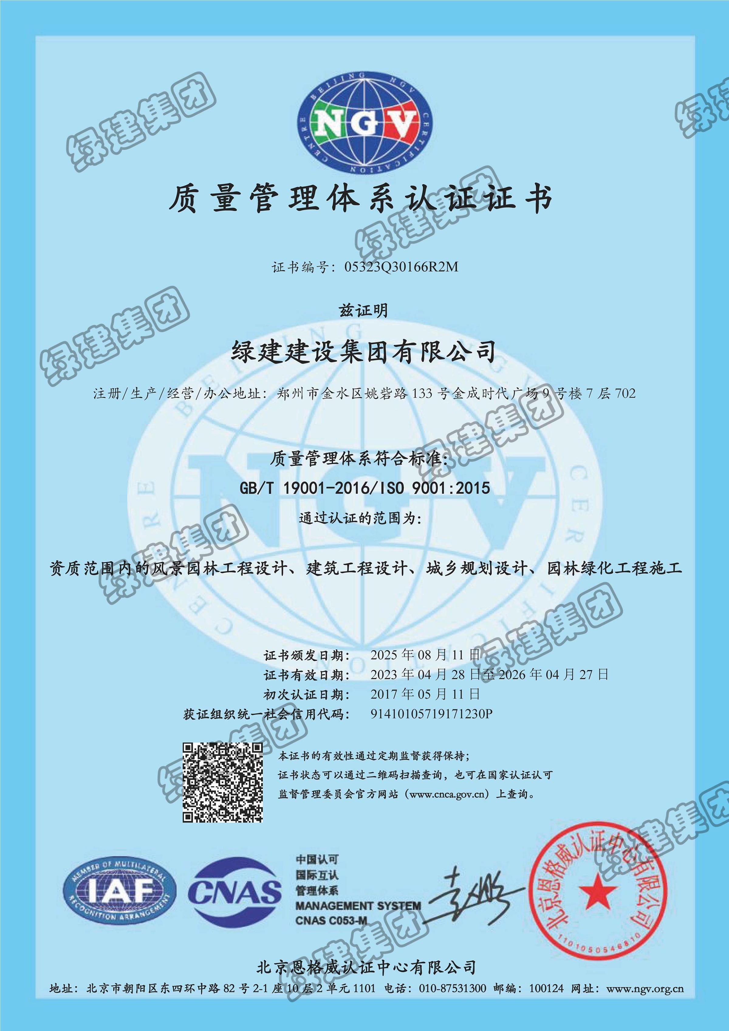 質(zhì)量管理體系認(rèn)證證書(園林綠化設(shè)計(jì)、建筑設(shè)計(jì)、城鄉(xiāng)規(guī)劃設(shè)計(jì))